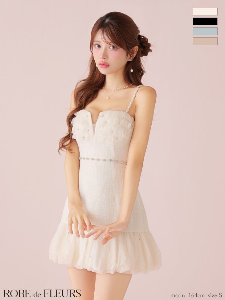 ★予約商品★【10月中旬頃入荷予定】【XSサイズあり】ラメ入り薄手ツイードフレアミニキャバドレス(fm4132