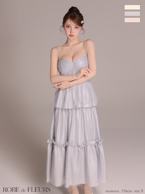 【XS~Lサイズあり】ショルダーリボンフレアチュールロングキャバドレス(DE3745)