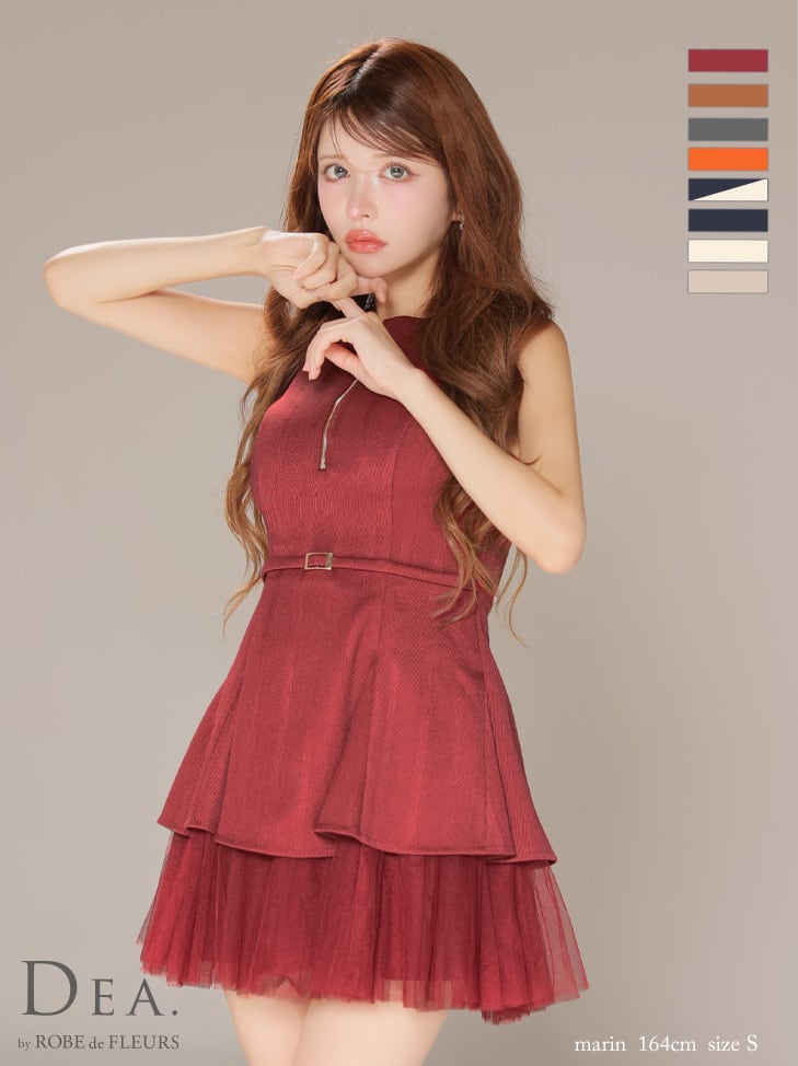 【XS~Lサイズあり】ノースリーブベルトデザインチュールミニキャバドレス(DE3444)