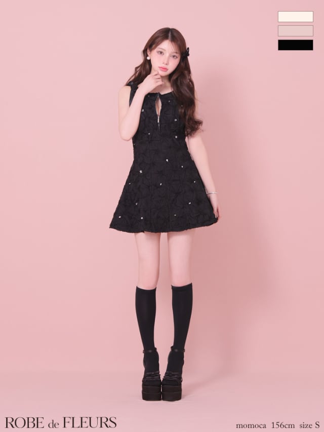 【XS〜Lサイズあり】フラッフィーフラワービジューミニキャバドレス (fm4360)