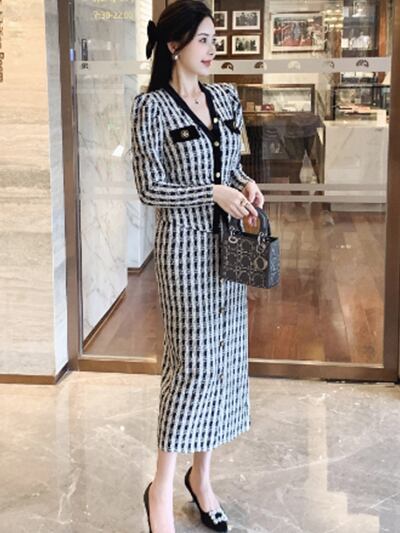 《プチプラ》タイトニット♡チェック柄セットアップ/キャバドレス/韓国ドレス