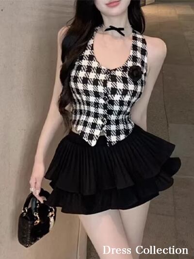 《プチプラ》ハイウェストトップスフレアスカートセット/キャバドレス/韓国ドレス