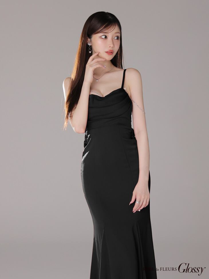 【XSサイズあり】サテンバストビジューロングキャバドレス(GL3768)/キャバドレス